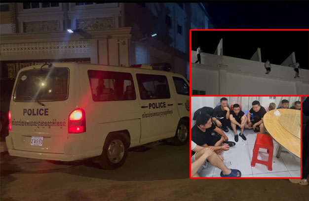 ភ្នំពេញ ៖ កម្លាំងនគរបាលព្រហ្មទណ្ឌកម្រិតធ្ងន់ សហការជាមួយកម្លាំងមូលដ្ឋានខណ្ឌឫស្សីកែវ បានធ្វើការ ឡោមព័ទ្ធនិងឃាត់ខ្លួនជនសង្ស័យ សរុបចំនួន៤១នាក់ ពាក់ព័ន្ធករណីបង្ខាំងមនុស្ស ចាប់ជំរិត និងល្បែង អនឡាញខុសច្បាប់។