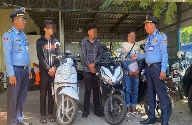 ភ្នំពេញ ៖ ដោយអនុវត្តតាមបទបញ្ជារបស់លោកឧត្តមសេនីយ៍ឯក ជួន ណារិន្ទ អគ្គស្នងការរង និងជាស្នង ការនគរបាលរាជធានីភ្នំពេញ និងការណែនាំរបស់សាលារដ្ឋបាលរាជធានីភ្នំពេញ នៅថ្ងៃ១៧ ខែវិច្ឆិកា ឆ្នាំ២០២៣ មន្ត្រីនគរបាលចរាចរណ៍ នៃស្នងការដ្ឋាននគរបាលរាជធានី ភ្នំពេញ ដឹកនាំដោយលោកវរសេនីយ៍ឯក សែម រតនា ស្នងការរង ទទួលផែនការងារនគរបាលសណ្តាប់ធ្នាប់ និងទទួលដឹកនាំការងារនគរបាលចរាចរណ៍ផ្លូវ គោក បានធ្វើការឃាត់សកម្មភាពក្រុមយុវជន ចំនួន៥នាក់ ក្នុងនោះ ២នាក់ ជាប្រធានក្រុម ដោយបើកបរម៉ូតូ បំពាក់សារ៉ែន កែច្នៃខុសបច្ចេកទេសច្បាប់ចរាចរណ៍ផ្លូវគោក ជិះបើកផ្លូវឱ្យរថយន្តសង្គ្រោះបន្ទាន់ ដោយគ្មានការ អនុញ្ញាត ឬគ្មានការស្នើសុំច្បាប់ពីអាជ្ញាធរ ដែលសកម្មភាពនេះ ធ្វើឱ្យបាត់បង់សណ្តាប់ធ្នាប់ បង្កបញ្ហាដល់អ្នកដំ ណើរផ្សេងទៀតក្នុងការធ្វើចរាចរណ៍។