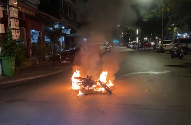 បុរសចិត្តខ្លាំង ដុតម៉ូតូចោល