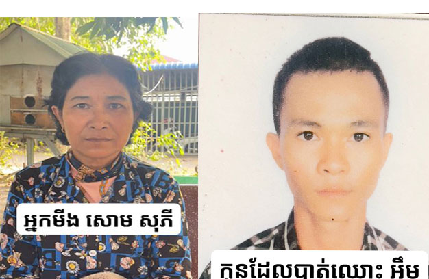 ខេត្តតាកែវ ៖ យុវជនម្នាក់ បានចេញពីផ្ទះទៅធ្វើការ រួចបាត់ដំណឹងសូន្យឈឹង មិនបានទាក់ទងមកក្រុម គ្រួសារសោះ អស់រយៈពេលជិត២ឆ្នាំមកហើយ មិនដឹងថាសុខទុក្ខយ៉ាងណា ទើបធ្វើឱ្យស្ត្រីជាម្តាយមាន ការព្រួយបារម្ភយ៉ាងខ្លាំង បានកាន់រូបថតដើររកកូនប្រុស។