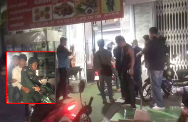 ភ្នំពេញ ៖ បុរសម្នាក់ ផឹកស៊ីស្រវឹង រួចក៏ក្រោកដើរទៅសុំជល់កែវអ្នកផឹកស៊ីតុក្បែរគ្នា និងបបួលគេឱ្យមក ផឹកតុជាមួយគ្នា តែគេមិនព្រមជល់កែវ និងមិនមកផឹកជាមួយ ស្រាប់តែខឹងសម្បា ទៅហៅបក្ខពួកជិះម៉ូតូ កាន់ដាវ និងដំបង បំបុកចូលហាង បម្រុងវាយគេ តែត្រូវម្ចាស់ហាងទាញទ្វារបិទ និងចាប់ឃាត់បានជន ដៃដល់ម្នាក់ភ្លាមៗ ប្រគល់ឱ្យសមត្ថកិច្ច នាំយកទៅចាត់ការតាមច្បាប់។