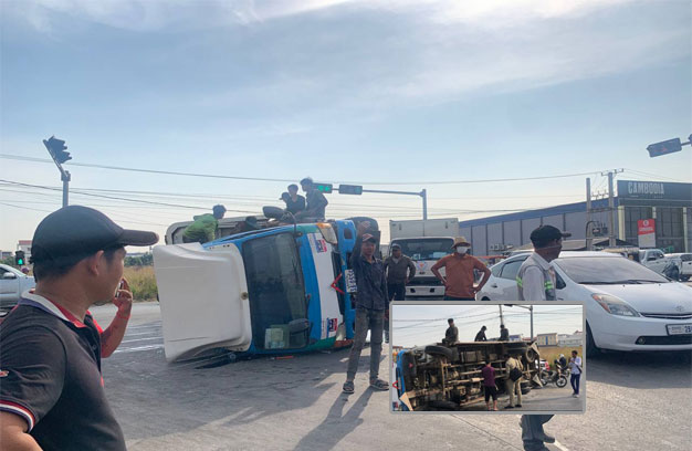 ភ្នំពេញ ៖ រថយន្តដឹកស្រាបៀរ ១គ្រឿង បើកបរក្នុងល្បឿនយ៉ាងលឿន មិនប្រយ័ត្ន ពេលមកដល់ផ្លូវកោង មិនបង្អង់ល្បឿង បួងចង្កូតខ្លាំងពេក បណ្តាលឱ្យក្រឡាប់ផ្ងារជើង សំណាងល្អមិនបង្កឱ្យមានគ្រោះ ថ្នាក់ ដល់អ្នកដំណើរណាម្នាក់ឡើយ។