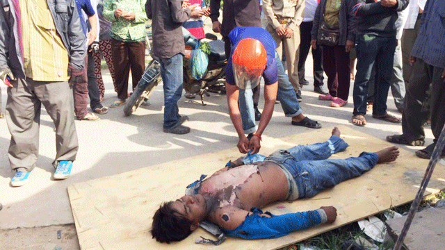 ភ្នំពេញ ៖ កម្មករបាញ់បេតុង ក្រុមហ៊ុនក្រឡុកសុីម៉ង់ត៍ ហាយលែនម្នាក់ ខណៈដែលកំពុង បាញ់បេតុង ស្រាប់តែ រថយន្តបាញ់បេតុង ដាក់ទុយោ គងប៉ះនឹងខ្សែកាបភ្លើងតែមានតុងស្យុងខ្ពស់ បណ្តាលឲ្យឆ្លងឆក់ កម្មករ ដែលកំពុងកាន់ ក្បាលទុយោ ឆេះខោអាវ រោល ខ្លោច​ពេញខ្លួន ស្លាប់ភ្លាមៗនៅកន្លែងកើតហេតុ បង្កឲ្យភ្ញាក់ផ្អើល កាលពីវេលាម៉ោង៩ព្រឹក ថ្ងៃទី៣១ ខែមករា ឆ្នាំ២០១៧ ស្ថិតនៅ​ការ​ដ្ឋានសំណង់មួយកន្លែង ក្បែររោងចក្រ ស្បែកជើង តាមផ្លូវទំនប់កប់ស្រូវ  ភូមិត្រពាំងទា សង្កាត់ត្រពាំងក្រសាំង ខណ្ឌពោធិសែនជ័យ ។