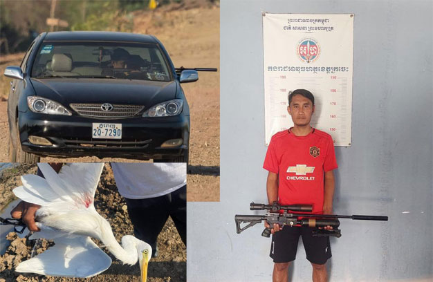 ខេត្តក្រចេះ ៖ បុរសជាមន្ត្រីប៉េអឹម (អាវុធហត្ថ) ម្នាក់ ដែលប្រើប្រាស់កាំភ្លើងខ្យល់ បាញ់សម្លាប់សត្វស្លាប (សត្វកុក) នៅចំណុចបឹងរំលាច ស្ថិតក្នុងភូមិស្រែស្តៅ សង្កាត់អូរឫស្សី ក្រុងក្រចេះ ហើយត្រូវបានគេថតបង្ហោះ ក្នុងបណ្តាញសង្គម ធ្វើឲ្យមហាជនផ្ទុះការរិះគន់នោះ ត្រូវបានកម្លាំងអាវុធហត្ថខេត្តក្រចេះ ឃាត់ខ្លួន នៅរសៀលថ្ងៃទី៣០ ខែមករា ឆ្នាំ២០២៤។