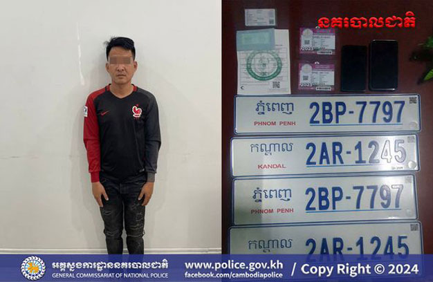 ភ្នំពេញ ៖ កម្លាំងសមត្ថកិច្ចរបស់ក្រុមការងារ Hotline Scam 24/7 របស់អគ្គស្នងការដ្ឋាននគរបាលជាតិ កាលពីថ្ងៃទី២៧ ខែមករា ឆ្នាំ២០២៤ បានធ្វើការស្រាវជ្រាវឃាត់ខ្លួនជនសង្ស័យម្នាក់ ពាក់ព័ន្ធនឹងការបង្ហោះធ្វើស្លាកលេខក្លែងក្លាយ និងក្លែងឯកសារសាធារណៈគ្រប់ប្រភេទ។
