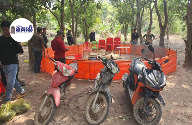 ខេត្តព្រៃវែង ៖ កម្លាំងអន្តរាគមន៍ នៃស្នងការដ្ឋាននគរបាលខេត្តព្រៃវែង ចុះស្រាវជ្រាវបង្ក្រាបបទល្មើសល្បែងស៊ីសងខុសច្បាប់ (បញ្ជល់មាន់ភ្នាល់ដាក់ប្រាក់) នៅក្នុងមូលដ្ឋានស្រុកស៊ីធរកណ្តាល ដោយធ្វើការឃាត់ខ្លួនជនសង្ស័យ ចំនួន៥នាក់ រួមនិងវត្ថុតាង មាន់ជល់ និងឧបករណ៍ សម្ភារៈជាច្រើន បញ្ជូនមកស្នងការដ្ឋានគរបាលខេត្តព្រៃវែង។