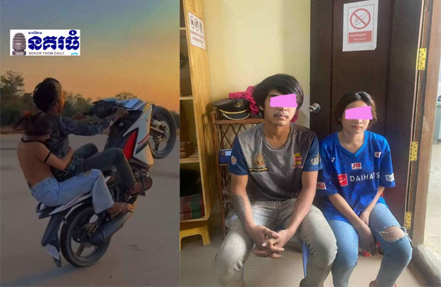 ខេត្តបាត់ដំបង ៖ គូស្នេហ៍វ័យក្មេង ១គូ បានធ្វើសកម្មភាពបង្ហោះម៉ូតូ លើដងផ្លូវ យ៉ាងអនាធិបតេយ្យ និងថែមទាំងថតវីដេអូ បង្ហោះតាមបណ្តាញសង្គម ដោយភ្ជាប់ជាមួយនឹងសំណេរថា “ចង់ឱ្យបាត់ដំបង មានតែយើង២នាក់” ធ្វើឱ្យមានការរិះគន់ពេញក្នុងបណ្តាញសង្គម រហូតត្រូវបានកម្លាំងសមត្ថកិច្ចស្រាវជ្រាវឃាត់ខ្លួនទាំងពីរនាក់ យកមកសាកសួរ។