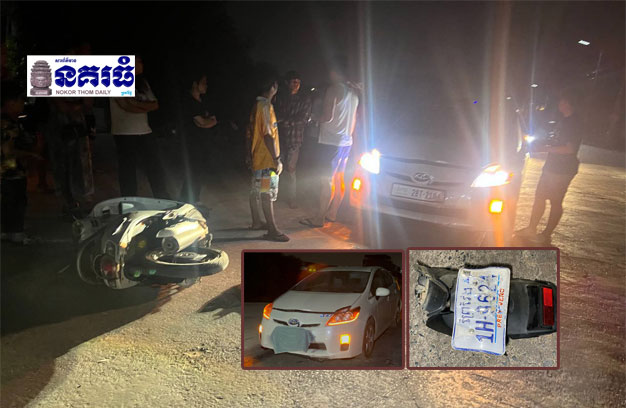 ម៉ូតូដែលយុវជន២នាក់ជិះបង្ហោះទៅបុករថយន្តគេនោះ ម៉ាកហុងដា ស្កុបពី ពណ៌ស ពាក់ស្លាកលេខ ព្រៃវែង 1H-9624 ជាម៉ូតូខ្ចីគេជិះ បំណងទៅទិញកៅអៀក ឱ្យម្តាយមីង។ ចំណែករថយន្តដែលរងការខូចខាត ម៉ាកតូយ៉ូតា ព្រូស ពណ៌ស ពាក់ស្លាកលេខ ភ្នំពេញ 2BT-2104។
