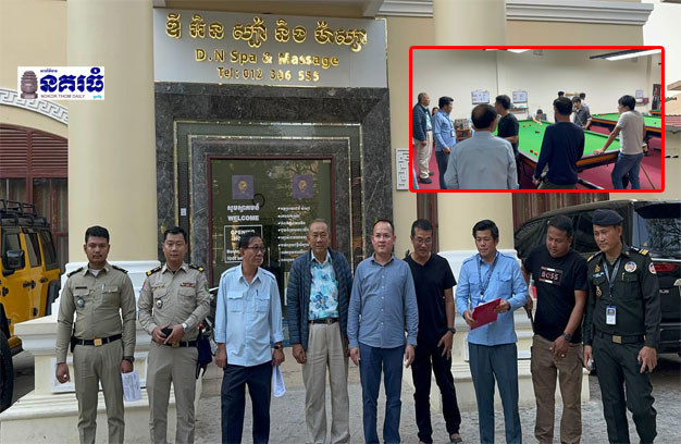 ភ្នំពេញ ៖ ក្រោយមានបណ្តាញសង្គមមួយចំនួន បានបង្ហោះជាសាធារណៈថា ទីតាំង ឌីអិន ស្ប៉ា និងម៉ាស្សា មានបង្កប់ល្បែងស៊ីសងខុសច្បាប់គ្រប់ប្រភេទ កម្លាំងគណៈបញ្ជាការឯកភាពខណ្ឌ ៧មករា បានចុះដល់ទីតាំង និងត្រួតពិនិត្យជាក់ស្តែង។