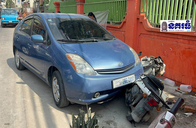 ភ្នំពេញ ៖ បុរសវ័យចំណាស់ ម្នាក់បានបើករថយន្ត ១គ្រឿង ដឹកប្រពន្ធដែលមានជំងឺ ចេញពីមន្ទីរពេទ្យ បំណង ត្រឡប់ទៅផ្ទះវិញ លុះពេលធ្វើដំណើរតាមផ្លូវ ស្រាប់តែអាការជំងឺប្រពន្ធរើឡើងភ្លាមៗ ធ្វើឱ្យបុរសជាប្តីភ័យស្លន់ ភ្លេចគិតថាខ្លួនកំពុងបើករថយន្ត ស្រវាចាប់ទាញលើកប្រពន្ធ ធ្វើឱ្យរថយន្តរេចង្កូតទៅបុករះម៉ូតូ ១គ្រឿង និងរទេះលក់ប្រហិតចៀន ១គ្រឿង បណ្តាលឱ្យស្ត្រីជាអ្នកជិះម៉ូតូ រងរបួស បាក់ភ្លៅ ចំណែកបុរសជាអ្នកលក់ប្រហិត ត្រូវខ្លាញ់បំពងប្រហិត រលាកពេញខ្លួន រងរបួសធ្ងន់។