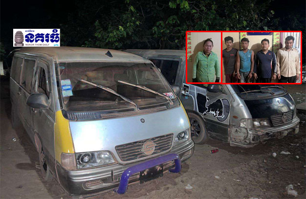 ចំណែកមនុស្ស៥នាក់ ដែលត្រូវបានឃាត់ខ្លួន រួមមាន ទី១-ឈ្មោះរុន ភារ៉ា ភេទប្រុស អាយុ២៧ឆ្នាំ ជាអ្នកបើក បររថយន្ត។ ទី២- ឈ្មោះវឿន វិន ភេទប្រុស អាយុ២៩ឆ្នាំ ជាអ្នកបើកបររថយន្ត។ ទី៣-ឈ្មោះចែម ពុធ ភេទប្រុស អាយុ៤០ឆ្នាំ ជាព្រូឡាន។ ទី៤-ឈ្មោះធួង ធឿង ភេទប្រុស អាយុ២៤ឆ្នាំ ជាព្រូឡាន និងទី៥-ឈ្មោះចយ ធារ៉ា ភេទស្រី អាយុ៥៥ឆ្នាំ ជាម្ចាស់រថយន្ត និងជាម្ចាស់ឈើ។ ទាំង៥នាក់ មានលំនៅ ភូមិអង្គ្រងទី២ ឃុំគ្រញូង ស្រុកកំចាយមារ ខេត្តព្រៃវែង។