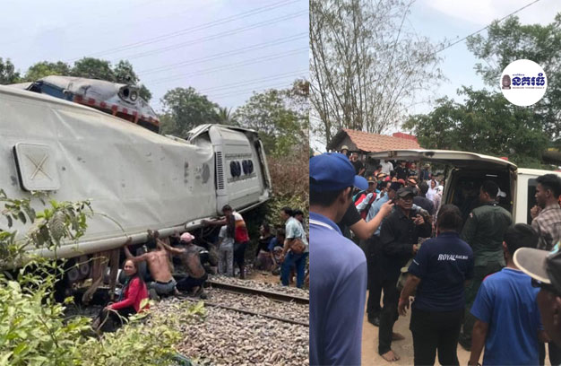 ខេត្តពោធិ៍សាត់ ៖ រថយន្តក្រុងដឹកអ្នកដំណើរ ធុនធំ១គ្រឿង (៤៥កៅអី) បានបើកឆ្លងផ្លូវដែកដោយខ្វះការប្រុងប្រយ័ត្ន គាប់ជួនមានរថភ្លើង ១ខ្សែឆ្លងកាត់ ក៏ជ្រូលបុកចំពាក់កណ្តាលរថយន្តក្រុង យ៉ាងពេញទំហឹង បណ្តាលឱ្យរថយន្តក្រុង ក្រឡាប់ និងត្រូវរថភ្លើងរុញអូសទៅមុខ ជាច្រើនម៉ែត្រ បង្កឱ្យអ្នកជិះក្នុងរថយន្តក្រុង ចំនួន៤៦ នាក់ បានរងរបួសធ្ងន់។