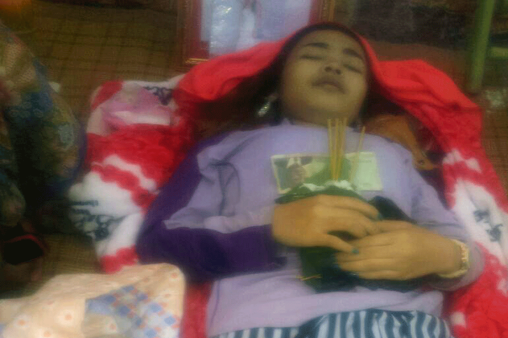 ប្រភពខាងលើ បានឱ្យដឹងទៀតថា រហូត មកដល់វេលាម៉ោង២និង១០នាទីរំលងអធ្រាត្រ ឈានចូលថ្ងៃទី១២ ខែកុម្ភៈ ឆ្នាំ២០១៧ ពួក គាត់បានឮសំឡេងកូនស្រីក្អួតចង្អោរ ទើបស្ទុះ ចូលទៅមើលស្រាប់តែប្រទះឃើញកូនស្រីកំពុង ដេកបែកពពុះមាត់ និងមានថ្នាំកណ្តុរនៅក្បែរ ខ្លួនទៀតផង ទើបផ្អើលឆោឡោថា កូនស្រីផឹក ថ្នាំកណ្តុរសម្លាប់ខ្លួន។ ភ្លាមនោះ ពួកគាត់ក៏ ប្រញាប់ដឹកបញ្ជូនកូនស្រីទៅកាន់ពេទ្យអង្គការ ក្នុងស្រុកត្រាំកក់ ខេត្តតាកែវ ដើម្បីជួយសង្គ្រោះ ជីវិត តែអកុសល កូនស្រីក៏ដាច់ខ្យល់ស្លាប់ក្នុង មន្ទីរពេទ្យតែម្តង។