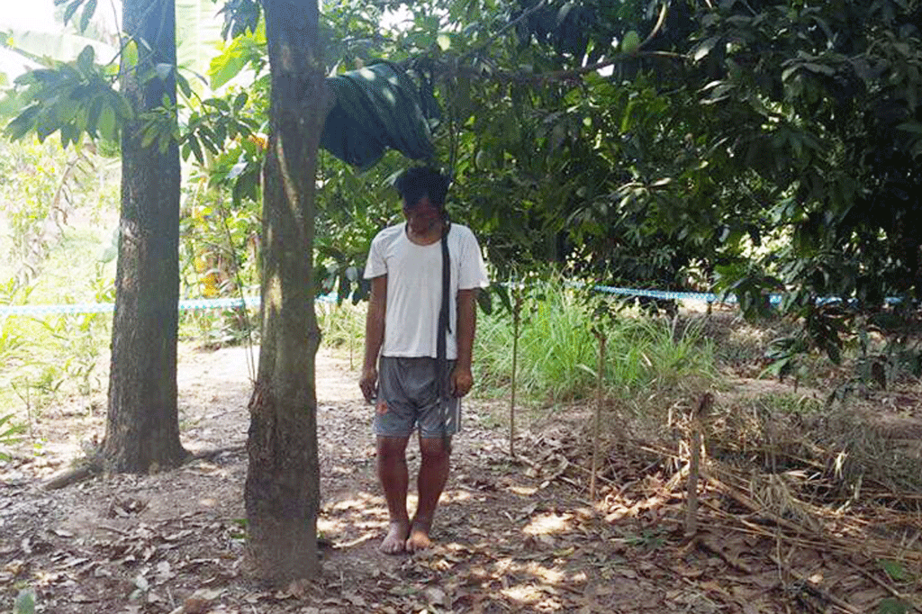 តាមប្រភពពីស្ត្រីជាប្រពន្ធជនរងគ្រោះ បានរៀបរាប់ប្រាប់ថា ប្តីរបស់នាង (ជនរង– គ្រោះ) បានកើតមានជំងឺប្រចាំកាយអស់រយៈ ពេល៧ខែមកហើយ តែព្យាបាលមិនបានធូរ– ស្បើយសោះ ទើបធ្វើឱ្យមួយរយៈចុងក្រោយ នេះ ប្តីរបស់នាងចេះតែធុញថប់ ស្រងូតស្រងាត់ ជាប់ជានិច្ច។ នៅមុនពេលកើតហេតុ កាលពី វេលាម៉ោង១០ព្រឹក ថ្ងៃទី១០ ខែកុម្ភៈ ឆ្នាំ២០១៧ ប្តីរបស់នាងបានកាន់អង្រឹងដើរចេញទៅខាង ក្រោយផ្ទះ ឃើញបែបនេះ នាងក៏បានសួរប្តី ថា “ឯងទៅណា?” ពេលនោះប្តីបានឆ្លើយថា “អញ ទៅដេក”។ បន្ទាប់មក នៅវេលាម៉ោង ប្រមាណ ១០និង១៥នាទីព្រឹកថ្ងៃដដែល នាងក៏កាន់ទឹក សណ្តែកមួយកំប៉ុងយកទៅឱ្យប្តីផឹក លុះទៅ ដល់ក៏ប្រទះឃើញប្តីបានចងកស្លាប់នៅលើ ដើមស្វាយបាត់ទៅហើយ ទើបនាងបានស្រែក ឆោឡោផ្អើលដល់អ្នកភូមិចោមរោមមើល និង រាយការណ៍សុំអន្តរាគមន៍ពីសមត្ថកិច្ច។