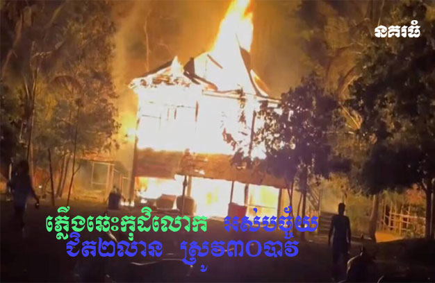 ខេត្តកំពង់ឆ្នាំង ៖ កុដិព្រះសង្ឃ ១ខ្នង ត្រូវបានអគ្គិភ័យឆាបឆេះបំផ្លាញអស់ បង្កឱ្យខូចខាតបច្ច័យ ជិត២លានរៀល រួមនិងស្រូវ ៣០បាវ ដោយមូលហេតុផ្តើមចេញពីការឆ្លងចរន្តអគ្គិសនី (ទុស្សេខ្សែភ្លើង)។