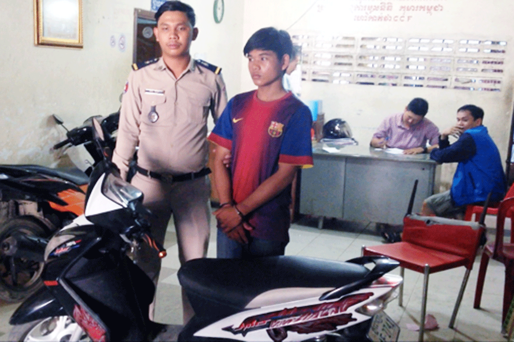 បើតាមសម្តីពីលោក ឯម ភារី នាយប៉ុស្តិ៍ស្តីទីស្ទឹងមានជ័យបានរាប់រៀបអោយដឹងថា កាលពីម៉ោង ៣និង២០នាទីរសៀល ថ្ងៃទី៤ ខែមីនា ឆ្នាំ២០១៧ ជនរងគ្រោះបានជិះម៉ូតូខាងលើចេញមកពីផ្ទះ ជិះយកទៅទុកនៅផ្សារស្ទឹងមានជ័យថ្មីជាន់ទីបួនដែលជាកន្លែងធ្វើការ ហើយគាត់ក៏បានចាក់ សោកម៉ូតូទុកចោលនៅកន្លែងចតរថយន្តរួចដើរចូលទៅធ្វើការនៅក្នុងក្រុមហ៊ុន លុះមួយសន្ទុះក្រោយមកក៏ស្រាប់តែជនសង្ស័យខាងលើរួមទាំងបក្សពួកម្នាក់ទៀតឈ្មោះ ភណ្ឌ ភេទប្រុស អាយុ១៧ឆ្នាំ មុនរបរនិងកន្លែងស្នាក់នៅមិនពិតប្រាកដ បានដើរមកធ្វើសកម្មភាពលួច កាច់សោកម៉ូតូរបស់គាត់យកទៅបាត់ដោយសុវត្ថិភាព ខណះពេលដែលគាត់ចេញមកវិញបំរុង និងយកម៉ូតូជិះទៅផ្ទះក៏ស្រាប់បាត់ម៉ូតូ ហើយរូបគាត់ក៏បានទៅដាក់ពាក្យនៅប៉ុស្តិ៍នគរបានរដ្ឋបាល ស្ទឹងមានជ័យដើម្បីអោយសមត្ថកិច្ចជួយអន្តរាគមន៍។