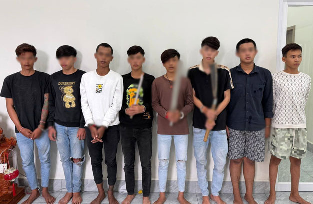 ភ្នំពេញ ៖ ក្មេងទំនើង ១ក្រុម បានធ្វើសកម្មភាពព្រួតវាយនិងកាប់ទៅលើគូទំនាស់ បណ្តាលឱ្យរងរបួស បន្ទាប់ មក បាននាំគ្នារត់គេចខ្លួនបាត់អស់ លុះ៨ថ្ងៃក្រោយមក ត្រូវបានសមត្ថកិច្ចជំនាញ ស្រាវជ្រាវតាមចាប់ខ្លួនបានជាបន្តបន្ទាប់ ចំនួន៨នាក់ នាំយកមកចាត់ការតាមច្បាប់។