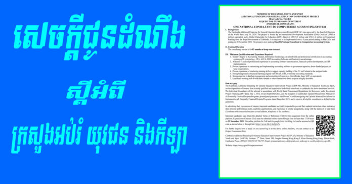 Homeព័ត៌មានជាតិសេចក្តីជូនដំណឹង ស្តីអំពីក្រសួងអប់រំ យុវជន និងកីឡា ព័ត៌មានជាតិ សេចក្តីជូនដំណឹង ស្តីអំពីក្រសួងអប់រំ យុវជន និងកីឡា By Davin November 12, 2025 0 0 Share FacebookTwitterPinterestWhatsApp RELATED ARTICLES ព័ត៌មានជាតិ សេចក្តីជូនដំណឹង ស្តីអំពីក្រសួងអប់រំ យុវជន និងកីឡា November 12, 2025 ព័ត៌មានជាតិ សេចក្តីជូនដំណឹង ស្តីអំពីក្រសួងអប់រំ យុវជន និងកីឡា November 12, 2025 ព័ត៌មានជាតិ សេចក្តីជូនដំណឹង ស្តីអំពីក្រសួងអប់រំ យុវជន និងកីឡា November 12, 2025