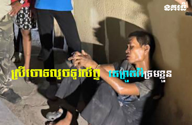 ភ្នំពេញ ៖ បុរសម្នាក់ បានចូលទៅលេងណេត មួយកន្លែង លុះពេលដើរចេញមកវិញ ស្រាប់តែមាននារីម្នាក់ បានស្រែកថា ចោរលួចទូរស័ព្ទ ធ្វើឱ្យផ្អើលដល់ប្រជាពលរដ្ឋព័ទ្ធចាប់បាន បញ្ចេញកំហឹង ម្នាក់១ដៃ១ជើងឡើង ទ្រមខ្លួន។