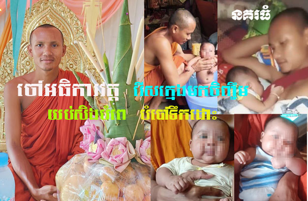 ព្រះគ្រូចៅអធិការ បានរៀបរាប់បន្តថា ក្នុងពេលកូននេះសម្រាកនៅក្នុងមន្ទីរពេទ្យ ខាងគ្រូពេទ្យ ប្រាប់ថា កូននេះកើតមិនគ្រប់ខែ (៧ខែ) ។ ដូច្នេះដោយសារកើតមិនគ្រប់ខែ និងត្រូវទុកចោលយូរផង ធ្វើពោះវៀន ក្រពះរបស់ទារកនៅខ្ចីខ្លាំងមែនទែន តម្រូវឲ្យសម្រាកព្យាបាលនៅក្នុងមន្ទីរពេទ្យ យូរថ្ងៃ ។ ប៉ុន្តែអាចដោយសារអំ ណាចបុណ្យកុសលដែរ ក្នុងអំឡុងពេល១៥ថ្ងៃ នៃការសម្រាកនៅមន្ទីរពេទ្យ ការពិនិត្យសុខភាពឃើញល្អរហូត អត់ឃើញមានបញ្ហាអ្វីទេ គឺកាយសម្បទា សុខភាពល្អទាំងអស់ ។ ដូច្នេះសម្រាកបានតែ ១៥ថ្ងៃ គ្រូពេទ្យក៏សម្រេ ចឲ្យព្រះអង្គ យកកូននេះមកនៅវត្ត ហើយនាំទៅចាក់ថ្នាំបង្ការ នៅមណ្ឌលសុខភាព ម្ដងហើយ នៅចាក់លើកទី២ ម្ដងទៀត ។ មិនតែប៉ុណ្ណោះ ខណៈដែលមិនដឹងថា ឪពុកម្ដាយឬសាច់ញាតិទារកនេះនៅណា គឺក្រៅពីគ្មានអ្នកណាចេញមកអះអាងថាជាម្ដាយរបស់កូននេះ ព្រះអង្គក៏បានរាយការណ៍ទៅខាងអាជ្ញាធរភូមិ ឃុំ និងប៉ូលិសប៉ុស្តិ៍រដ្ឋបាល ឲ្យបានដឹងឮដែរ កុំឲ្យមានការយល់ច្រឡំថា លួចកើតគេមកពីណា ដើម្បីជួយសម្រួលដល់ការធ្វើអត្រានុកូលដ្ឋាន ប៉ុន្តែមកដល់ពេលនេះ មិនទាន់បានធ្វើសំបុត្របញ្ជាក់កំណើតនៅឡើយ ដោយសារមេឃុំ នៅជាប់រវល់ការងារចាំបាច់មួយចំនួន ឲ្យព្រះអង្គ រង់ចាំបន្តិចសិន ពេលរួចការងារ គាត់នឹងធ្វើឲ្យ ។