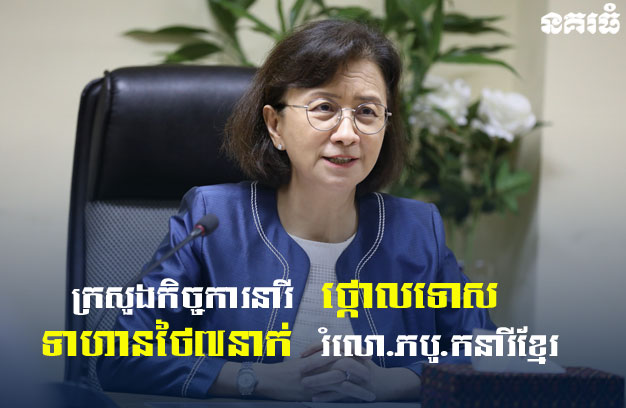 ភ្នំពេញ ៖ ក្រសួងកិច្ចការនារី បានចេញសេចក្តីថ្លែងការណ៍ ថ្កោលទោសយ៉ាងដាច់អហង្ការចំពោះទង្វើដ៏សាហាវព្រៃផ្សៃ ឃោរឃៅ អមនុស្សធម៌ របស់ក្រុមទាហានឈុតខ្មៅថៃ មកលើក្រុមពលករទេសន្តរប្រវេសន៍ខ្មែរ ចំនួន ១៣នាក់ ហើយទាហានឈុតខ្មៅថៃ ៧នាក់ បានប្រព្រឹត្តអំពើថោកទាប ស្មោកគ្រោក រំលោភបូកទៅលើនារីខ្មែរ ១នាក់ ពេលនាងធ្វើដំណើរពីប្រទេសថៃ ត្រឡប់មកប្រទេសកម្ពុជា ។
