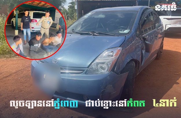តាមប្រភពសមត្ថកិច្ច បានឱ្យដឹងថា ដោយអនុវត្តតាមបទបញ្ជាផ្ទាល់របស់លោកឧត្តមសេនីយ៍ឯក ជួន ណារិន្ទ អគ្គស្នងការរង និងជា ស្នងការនគរបាលរាជធានីភ្នំពេញ ដឹកនាំដោយលោកឧត្តមសេនីយ៍ត្រី ប៊ុន សត្យា ស្នង ការរង ទទួលផែនការងារនគរបាលព្រហ្មទណ្ឌ និងលោក វរសេនីយ៍ឯក ជឹម ស៊ីថា អធិការនគរបាលខណ្ឌដង្កោ បានចុះធ្វើការស្រាវជ្រាវ បង្ក្រាបបានករណីលួចរថយន្ត ១គ្រឿង ពីក្នុងបុរីលឹមឈាងហាក់ ស្ថិតនៅភូមិម័ល សង្កាត់ដង្កោ ខណ្ឌដង្កោ រាជធានីភ្នំពេញ ដោយបានឃាត់ជនសង្ស័យ ចំនួន៤នាក់ (១-ឈ្មោះឈឹម បូរ៉ា ២-ឈ្មោះលី រ៉ាវី ៣- ឈ្មោះពៅ ពេជ្រ ៤-ឈ្មោះប្រាក់ អុល) ព្រមទាំងចាប់យកវត្ថុតាង រថយន្ត ១គ្រឿង ម៉ាកតូយ៉ូតាព្រូស ពណ៌ខៀវ ស៊េរីឆ្នាំ២០០៦ ពាក់ស្លាក លេខ ភ្នំពេញ 2BK-0148 លេខតួ JTDKB20U367081254 លេខម៉ាស៊ីន 1NZU051712។