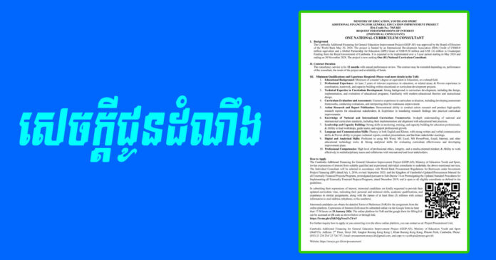 សេចក្តីជូនដំណឹង ស្តីអំពី ក្រសួងអប់រំ យុវជន និងកីឡា