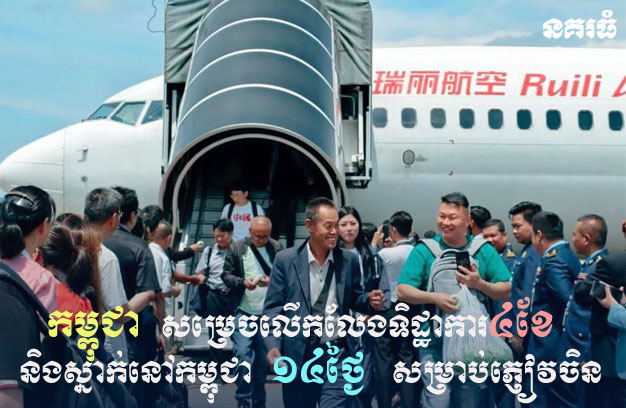កម្ពុជា សម្រេចលើកលែងទិដ្ឋាការ៤ខែ និងស្នាក់នៅកម្ពុជា ១៤ថ្ងៃ សម្រាប់ភ្ញៀវចិន
