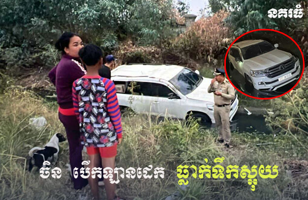 រថយន្តដែលធ្លាក់ប្រឡាយ ម៉ាក Land Cruiser ពណ៌ស ពាក់ស្លាកលេខ ភ្នំពេញ 2N-5225 បើកបរដោយជនជាតិចិន ពុំស្គាល់អត្តសញ្ញាណ ក្រោយកើតហេតុ បានគេចខ្លួនបាត់។