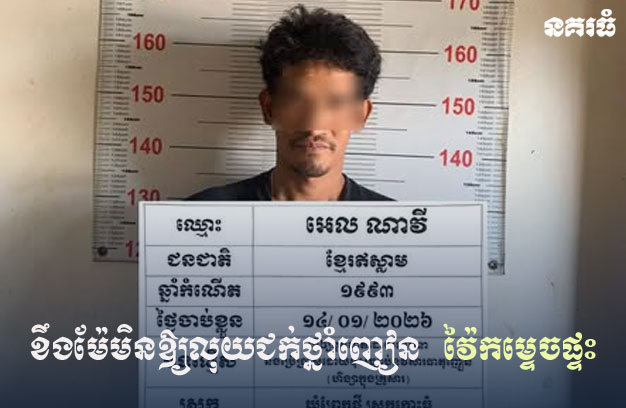 ខេត្តកណ្តាល ៖ ជនសង្ស័យម្នាក់ តែងប្រើប្រាស់ថ្នាំញៀនជាប្រចាំ និងឧស្សាហ៍អុកឡុក រករឿងក្រុមគ្រួសារ ធ្លាប់ត្រូវបានសមត្ថកិច្ចចាប់ទៅអប់រំដែរ តែមិនព្រមកែខ្លួន លុះចុងក្រោយ សុំលុយម្តាយ យកទៅទិញថ្នាំញៀនប្រើប្រាស់ លុះម្តាយប្រាប់ថាអត់មានលុយ ក៏ផ្ទុះកំហឹង វាយកម្ទេចរបស់ទ្រព្យនៅក្នុងផ្ទះ បណ្តាលឱ្យខូចខាតអស់ ធ្វើឱ្យស្ត្រីជាម្តាយ ទ្រាំលែងបាន ក៏ប្តឹង សមត្ថកិច្ចចាប់ឃាត់ខ្លួនកូនប្រុស យកទៅចាត់ការតាមច្បាប់។ករណីកូនប្រុសសុំលុយម៉ែមិនបាន វាយបំផ្លាញទ្រព្យសម្បត្តិក្នុងផ្ទះនេះ បានកើតឡើង កាលពីវេលាម៉ោង ៧និង១៥នាទីព្រឹក ថ្ងៃទី១៤ ខែមករា ឆ្នាំ២០២៦ នៅចំណុចភូមិចាមក្រោម ឃុំព្រែកថ្មី ស្រុកកោះធំ។