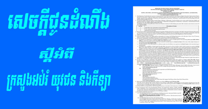 សេចក្តីជូនដំណឹង ស្តីអំពី ក្រសួងអប់រំ យុវជន និងកីឡា