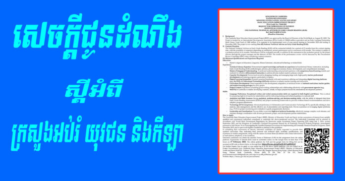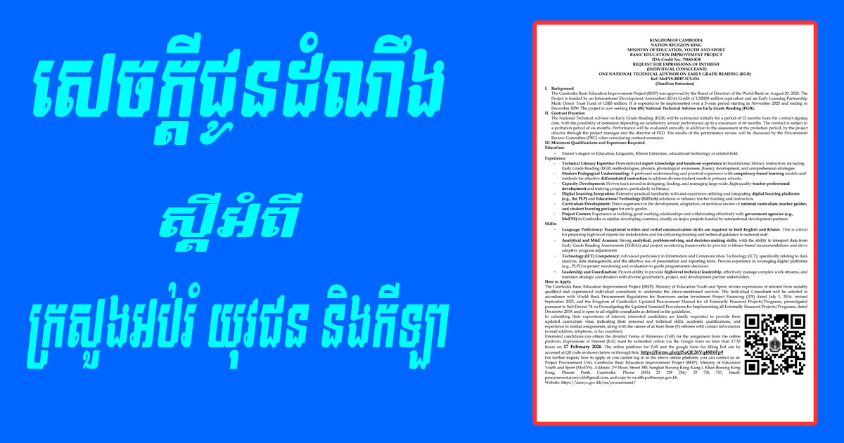 សេចក្តីជូនដំណឹង ស្តីអំពី ក្រសួងអប់រំ យុវជន និងកីឡា