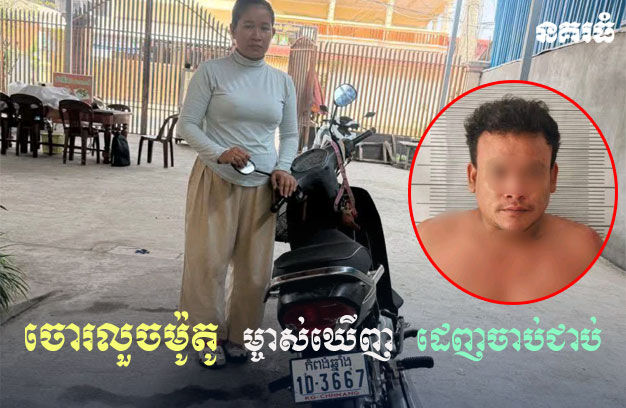 ចោរលួចម៉ូតូ ម្ចាស់ឃើញ ដេញចាប់ជាប់