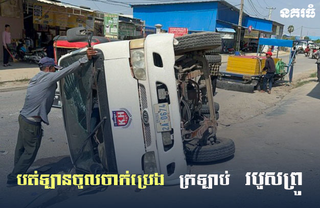 បត់ឡានចូលចាក់ប្រេង ក្រឡាប់ របួសព្រូ