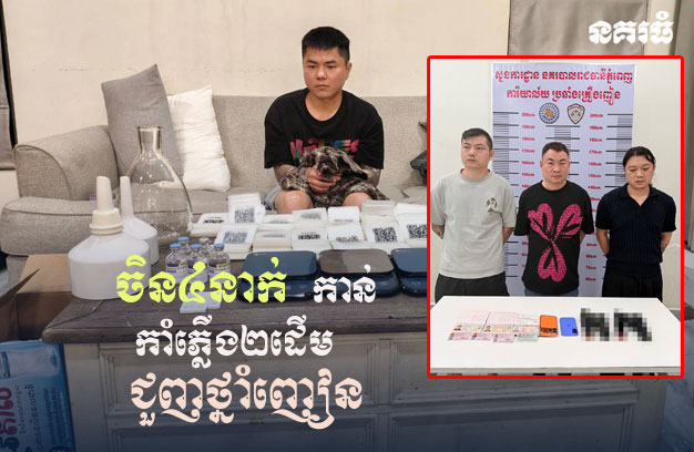 ភ្នំពេញ ៖ កម្លាំងជំនាញការិយាល័យប្រឆាំងបទល្មើសគ្រឿងញៀន កាលពីរសៀលថ្ងៃទី៣០ ខែមីនា ឆ្នាំ២០២៦ បានសហការជាមួយកម្លាំងអធិការនគរបាលខណ្ឌសែនសុខ និងកម្លាំងគណៈបញ្ជាការឯកភាពខណ្ឌសែនសុខ ចុះត្រួតពិនិត្យរដ្ឋបាលនៅទីតាំងផ្ទះលេខ២៣ ផ្លូវ J-01 បុរីហ្គ្រេនភ្នំពេញ ក្នុងភូមិឃ្មួញ សង្កាត់ឃ្មួញ ខណ្ឌសែនសុខ រាជធានីភ្នំពេញ រកឃើញគ្រឿងញៀន ហើយធ្វើការស្រាវជ្រាវឈានដល់ការចាប់ខ្លួន ជនជាតិចិន ជាបន្ត បន្ទាប់ ចំនួន៤នាក់ ដកហូតកាំភ្លើងខ្លី ២ដើម និងថ្នាំញៀន មួយចំនួន។