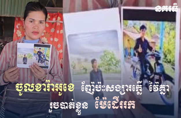 តាមសម្តីស្ត្រីជាម្តាយយុវជនដែលបាត់ខ្លួនខាងលើ បានរៀបរាប់ប្រាប់ថា កូនប្រុសរបស់គាត់ បានបាត់ខ្លួន តាំង ពីយប់ថ្ងៃទី១៩ ខែកុម្ភៈ ឆ្នាំ២០២៦ ក្រោយពីកើតមានជម្លោះវាយតប់គ្នាជាមួយមិត្តភក្តិ នៅក្នុងហាងខារ៉ាអូខេ មួយកន្លែង រួចស្រាប់តែបាត់ដំណឹងឈឹង រហូតដល់សព្វថ្ងៃនេះតែម្តង គិតទៅមានរយៈពេលប្រមាណជាង ១ខែកន្លះមកហើយ។