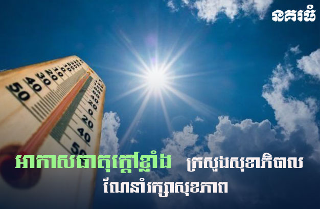 ភ្នំពេញ ៖ ក្រសួងសុខាភិបាល នៃព្រះរាជាណាចក្រកម្ពុជា សូមជម្រាបជូនសាធារណជន ឱ្យបានជ្រាបថា ក្នុងអំឡុងពេលមានការឡើង កម្តៅក្នុងចន្លោះពី 37°C ទៅ 41°C បណ្តាលមកពីការប្រែប្រួលអាកាសធាតុ ដែលបង្កឱ្យមានការកើតមានរលកកម្តៅមិនទៀងទាត់។ អាកាសធាតុក្តៅខ្លាំង អាចបង្កឱ្យបុគ្គលគ្រប់រូប ជាពិសេស មនុស្សចាស់ ទារក កុមារ ស្ត្រីមានផ្ទៃពោះ អ្នកធ្វើការក្រៅផ្ទះ អត្តពលិក និងអ្នកមានជំងឺរ៉ាំរ៉ៃ ងាយធ្លាក់ខ្លួនឈឺ ជាយថាហេតុ រួមមានបញ្ហានៅខួរក្បាល (Heat Stroke) ការខ្សោះជាតិទឹក ជំងឺសរសៃឈាមបេះដូង ជំងឺតម្រងនោម ជំងឺថប់អារម្មណ៍ រមួលក្រពើ រលាកផ្លូវដង្ហើម និងនាំឱ្យមានជំងឺឆ្លងផ្សេងៗដូចជា ជំងឺរាករូស ជំងឺ រាកមួល និងជំងឺគ្រុនពោះវៀន ៘ បណ្តាលមកពីការប្រើប្រាស់ទឹកមិនស្អាត និងចំណីអាហារពុំមានសុវត្ថិ ភាព។