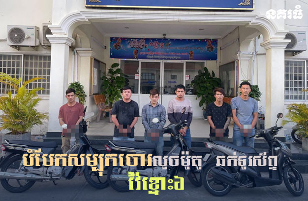 ជនសង្ស័យទាំង៦នាក់ ខាងលើ ជាមុខសញ្ញាពាក់ព័ន្ធនឹងករណីលួច (ម៉ូតូ) និងលួចមានស្ថានទម្ងន់ទោស (ឆក់ទូរស័ព្ទ) និងទទួលផលចោរកម្ម ក្នុងអំឡុងខែមីនា និងខែមេសា ឆ្នាំ២០២៦។