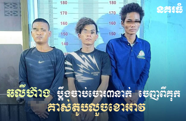 ខេត្តតាកែវ ៖ ជនសង្ស័យ ចំនួន៣នាក់ សុទ្ធតែជាមុខសញ្ញាធ្លាប់ជាប់ពន្ធនាគារដូចគ្នា បានធ្វើសកម្មភាពគាស់ដំបូលស័ង្កសីតូបលក់ខោអាវ របស់លោក ឆលីហ៊ាង លួចខោអាវ អស់មួយចំនួនធំ ហើយនាំគ្នារត់គេចខ្លួនបាត់អស់។ លុះម្ចាស់តូបដាក់ពាក្យបណ្តឹង ត្រូវកម្លាំងសមត្ថកិច្ចជំនាញស្រាវជ្រាវឃាត់ខ្លួនបានទាំង៣នាក់ នាំយកមកចាត់ការតាមច្បាប់។