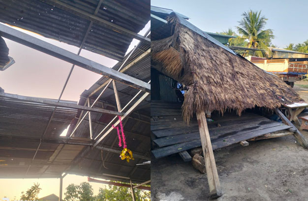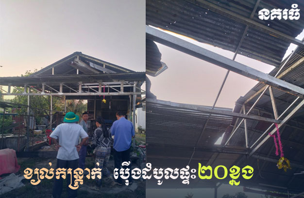 ខេត្តបាត់ដំបង ៖ លំនៅឋានរបស់ប្រជាពលរដ្ឋប្រមាណ ជិត២០ខ្នង នៅក្នុងឃុំ ចំនួន២ នៃស្រុកថ្មគោល ខេត្តបាត់ដំបង បានរងការខូចខាតជាថ្មីទៀត ដោយខ្យល់កន្ត្រាក់ វាយប្រហារ កាលពីរសៀលថ្ងៃទី២១ ខែមេសា ឆ្នាំ២០២៦ តែពុំបង្កឱ្យមានគ្រោះថ្នាក់ដល់មនុស្សទេ។