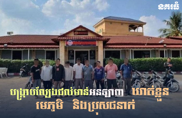 ខេត្តកំពង់ស្ពឺ ៖ អ្នកញៀនល្បែង ចំនួន៩នាក់ ក្នុងនោះមានម្នាក់ ជាមេភូមិ ត្រូវបានកម្លាំងកងរាជអាវុធហត្ថស្រុកថ្ពង ធ្វើការឆ្មក់បង្ក្រាប ឃាត់ខ្លួន ក្រោយពីក្រុមអ្នកញៀនល្បែងនេះ កំពុងតែប្រមូលផ្ដុំគ្នាលេងល្បែងស៊ីសង ជល់មាន់តាមអនឡាញ (ទូរស័ព្ទដៃ) ។
