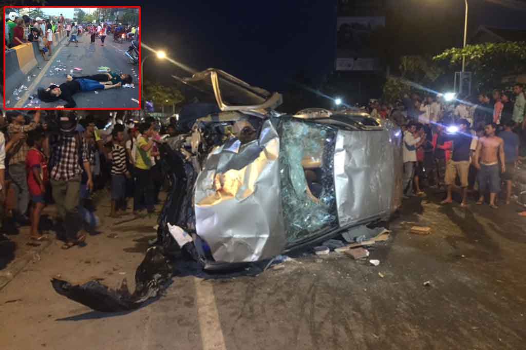 ភ្នំពេញ ៖ រថយន្តកាមរីឆ្លាម១គ្រឿង បើកបញ្រ្ចាសទិសដៅចរាចរណ៌បានបុករះម៉ូតូជាច្រឿនគ្រឿង បណ្តាលឲ្យមានមនុស្សស្លាប់ និងរបួសរដូករណែលពេញផ្លូវជិត១០នាក់ បង្កឲ្យមានការភ្ញាក់ផ្អើលកឡើង កាលពីវេលាម៉ោង៦ និង៣០នាទីរសៀល ថ្ងៃទី២៧ ខែមីនា ឆ្នាំ២០១៧ នៅលើមហាវិថីព្រះមុនីវង្ស ចំណុចថមុខស្ថានីយឧតុនិយម ស្ថិតក្នុងសង្កាត់ទន្លេបាសាក់ ខណ្ឌចំការមន។