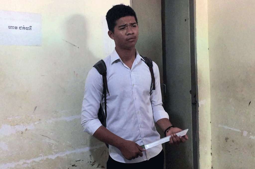 ប្រភពដដែលបន្តថា ស្រាប់តែនៅរសៀល ថ្ងៃទី២៧ ខែមីនា ឆ្នាំ២០១៧ យុវជនខាងលើ ប្រដាប់ដោយដាវមួយដើម បានកាន់ចូលទៅក្នុង ថ្នាក់រៀន និងបានគំរាមសួរនារីរងគ្រោះថា តើអូនស្រឡាញ់បងអត់? បើមិនស្រឡាញ់ ប្រយ័ត្នខ្លួន ទើបធ្វើឱ្យភ្ញាក់ផ្អើលដល់សិស្សក្នុង ថ្នាក់ លោកគ្រូអ្នកគ្រូ ដឹងដល់អាណាព្យាបាល ក្មេងស្រី ហើយត្រូវបានគ្រូក្នុងសាលារាយការណ៍ ប្រាប់ប៉ូលិសចុះទៅឃាត់ខ្លួនតែម្តង។