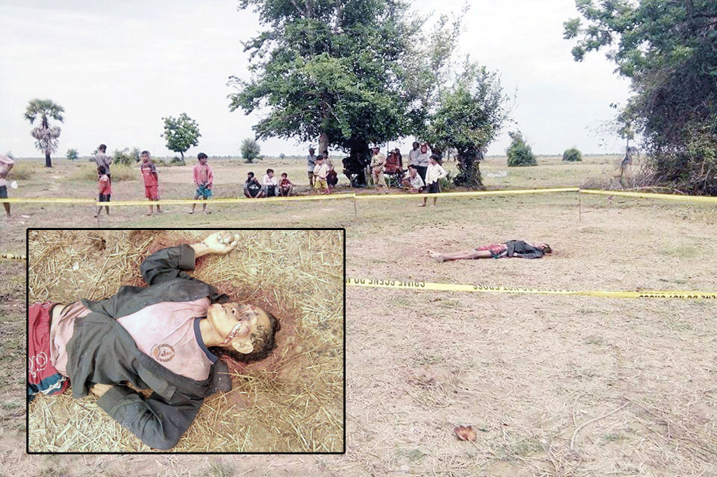 ខេត្តពោធិ៍សាត់ ៖ សពបុរសពោះម៉ាយម្នាក់ ត្រូវបានគេប្រទះឃើញដេកស្លាប់នៅ កណ្តាលវាលស្រែខាងមុខផ្ទះរបស់ខ្លួន ដោយ មានស្លាកស្នាមកាប់ប្រហារខ្ទេចមុខ ស្ទើរមើល លែងស្គាល់ និងត្រូវគេសង្ស័យថា ជាករណី ស្នេហាត្រីកោណ បង្កឱ្យមានការភ្ញាក់ផ្អើលឡើង កាលពីវេលាព្រឹកថ្ងៃទី០៣ ខែមេសា ឆ្នាំ២០១៧ នៅចំណុចវាលស្រែខាងមុខផ្ទះជនរងគ្រោះ ចម្ងាយប្រមាណ២៥ម៉ែត្រ ស្ថិតក្នុងភូមិត្រាំព័រ ឃុំស្នាមព្រះ ស្រុកបាកាន។