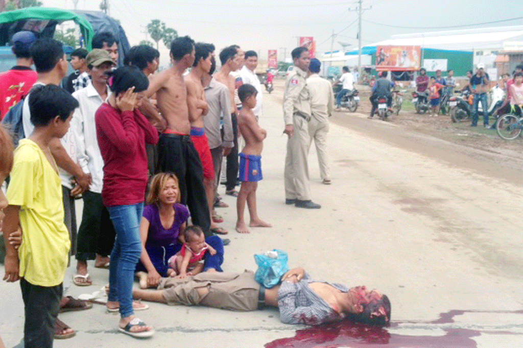 ភ្នំពេញ៖ បងប្អូនជីដូនមួយ២នាក់ ជិះកង់ចេញពីផ្ទះដើម្បីទៅហូបការបងប្អូន ខណៈពេលជិះមកដល់ពាក់កណ្ដាលផ្លូវ ស្រាប់តែប្អូនដែលជាអ្នកអង្គុយខាងក្រោយបានលោតចុះពីលើកង់ត្រូវរថយន្តកុងតឺន័របើកកៀរហើយកិនបុរសដែលលោតពីកង់បណ្ដាលអោយដួលចូលក្រោមកង់រថយន្តកិនធ្លាយខួរស្លាប់ភ្លាមៗនៅកន្លែងកើត ដែលហេតុការណ៍នេះបានកើតឡើងនៅវេលា៥និង៥៨នាទីល្ងាចថ្ងៃទី៧ ខែមេសា ឆ្នាំ២០១៧ ទុលមុខនិងវត្ត អង្គមេត្រីផ្លូវបេតុងព្រៃសរ ភូមិកំរៀង សង្កាត់ព្រៃវែង ខណ្ឌដង្កោ ។