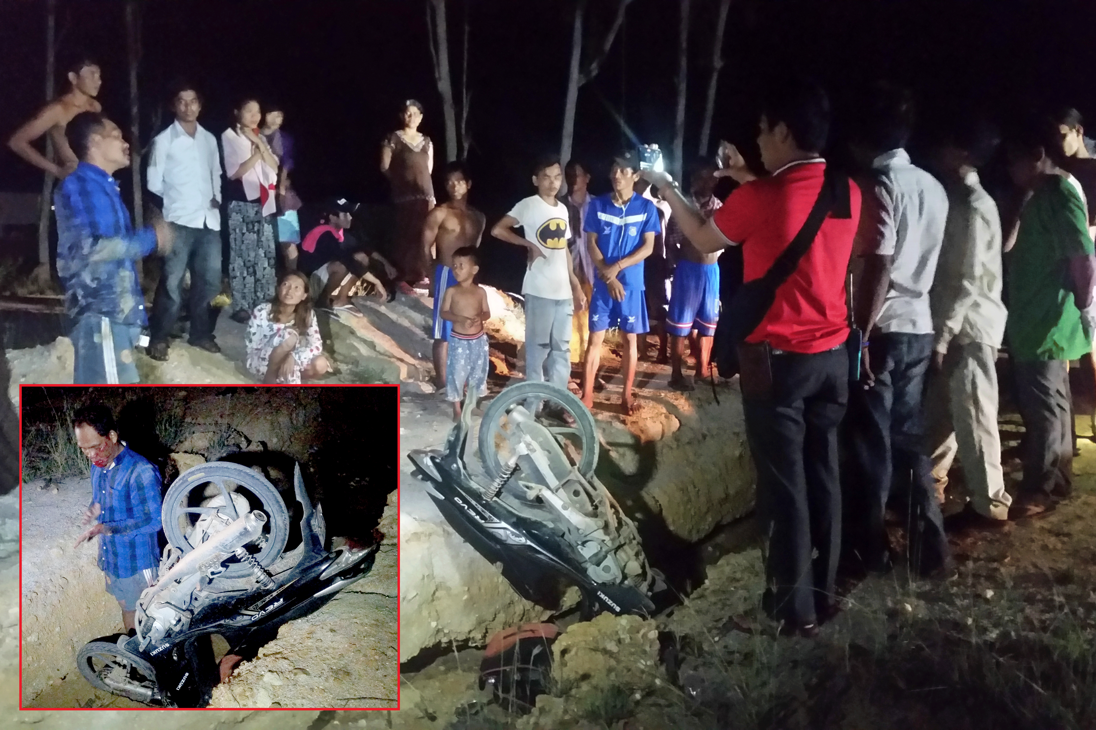 ខឹងប្រពន្ធវេចខោអាវទៅនៅផ្ទះមិត្តភក្តិ ជិះម៉ូតូធ្លាក់ប្រឡាយ បែកមុខមាត់