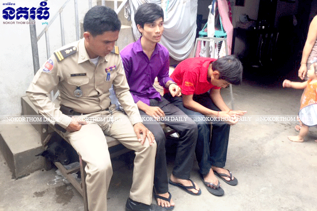 ភ្នំពេញ៖ យុវជន២នាក់ ត្រូវបាននគរបាលឃាត់ខ្លួនយោងតាមបណ្តឹងផ្ទាល់មាត់របស់សាច់ញាតិថា មកអុកឡុកក្នុងផ្ទះ ដើម្បីរកលុយទិញថ្នាំញៀនជក់។ ការឃាត់ខ្លួនយុវជន២នាក់ខាងលើនេះ កាលពីម៉ោង១៥និង៤០នាទីរសៀល ថ្ងៃទី១៣ ខែមិថុនា ឆ្នាំ២០១៧ នៅផ្ទះលេខ១៣៤សេផ្លូវលំ ភូមិសេប៉េសេ សង្កាត់ទឹកថ្លា ខណ្ឌសែនសុខ។