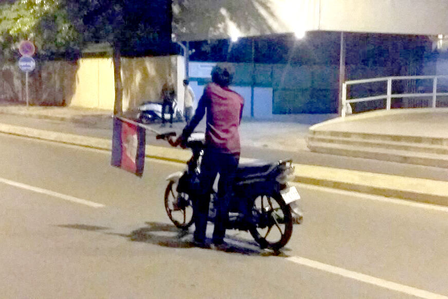 ម៉ូតូមួយគ្រឿង ម៉ាកហុងដាឌ្រីម ស៊េរីឆ្នាំ២០០៦ ពណ៌ខ្មៅ ពាក់ស្លាកលេខតាកែវ 1C-6115 បើកបរដោយបុរសម្នាក់តាមបណ្តោយផ្លូវសហព័ន្ធរុស្ស៊ី ក្នុងទិសដៅពីលិចទៅកើត លុះមកដល់ចំណុចកើតហេតុ ក៏បានផ្តួលម៉ូតូចោលកណ្តាលផ្លូវ នៅគល់ស្ពានអាកាស៧មករា ត្រើយខាងកើត រួចធ្វើសកម្មភាពកាន់ទង់ជាតិរត់គ្រវី និងស្រែកឡូឡាពេញដងផ្លូវ ។