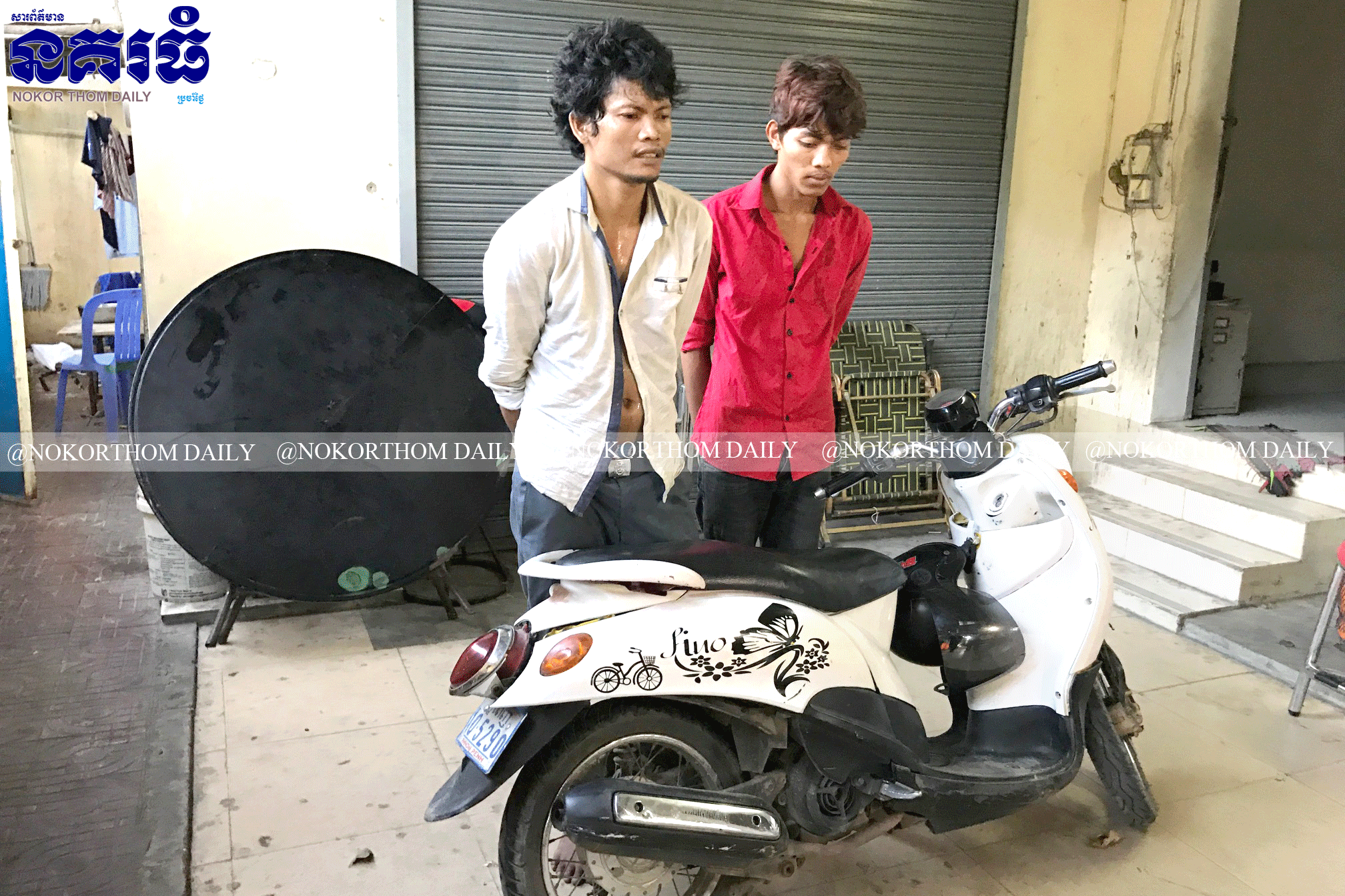 ភ្នំពេញ៖ នរគបាលខណ្ឌទួលគោក ល្បាតឃាត់ខ្លួនជនសង្ស័យចំនួន២នាក់បានភ្លាមៗ ក្រោយពីធ្វើសកម្មភាពឆក់ទូរស័ព្ទពីនារីម្នាក់ ដាក់នៅក្នុងប្រអប់ម៉ូតូខាងមុខ មិនបានសម្រេចជិះទៅបុករថយន្តគេដួល។ ករណីឆក់ទូរស័ព្ទនេះកើតឡើងនៅខាងមុខផ្ទះលេខ១០អា ផ្លូវ៦៦៤ ក្រុម៦ ភូមិ៨ សង្កាត់បឹងសាឡាង ខណ្ឌទួលគោក រាជធានីភ្នំពេញ នៅម៉ោង៤និង៣០នាទីល្ងាច ថ្ងៃទី១៥ ខែមិថុនា ឆ្នាំ២០១៧ ។