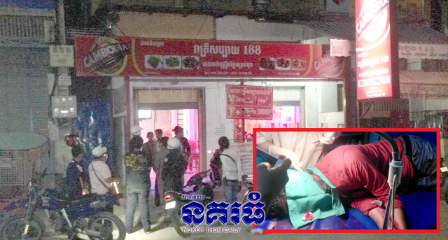 ភ្នំពេញ ៖ យុវជន២ក្រុមចូលផឹកស៊ីហាងជាមួយគ្នា អង្គុយតុជាប់គ្នា គ្រាន់តែខឹងសម្លឹងមុខ ពេលចេញពីផឹកស៊ីវិញ កាប់នឹងដាវសំាម៉ូរ៉ៃ បណ្តាលឲ្យរងរបួសធ្ងន់ម្នាក់ បង្កឲ្យមានការភ្ញាក់ផ្អើលឡើងនៅវេលាម៉ោង១០និង៣០នាទីយប់ ថ្ងៃទី១៧ ខែកក្កដា ឆ្នាំ២០១៧ នៅមុខហាងផឹកស៊ីយីហោ រាត្រីសប្បាយ ១៨៨ ផ្លូវវេងស្រេង សង្កាត់ស្ទឹងមានជ័យ ខណ្ឌមានជ័យ ។
